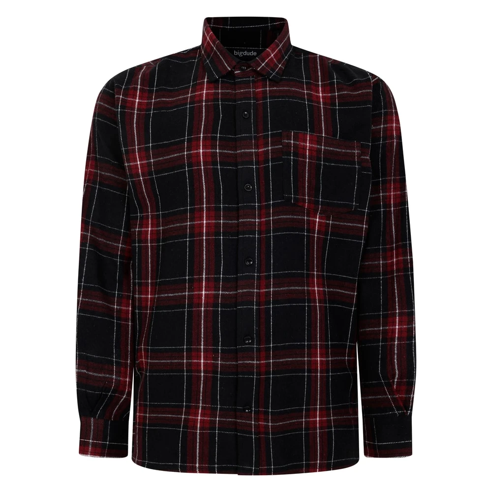 Bigdude Checked Flannel Long Sleeve Shirt Burgundy/Black
