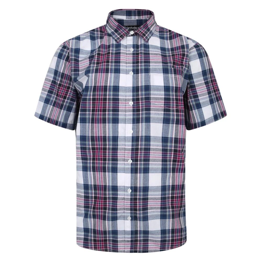 Bigdude Cutaway Collar Checked Shirt Purple/Navy