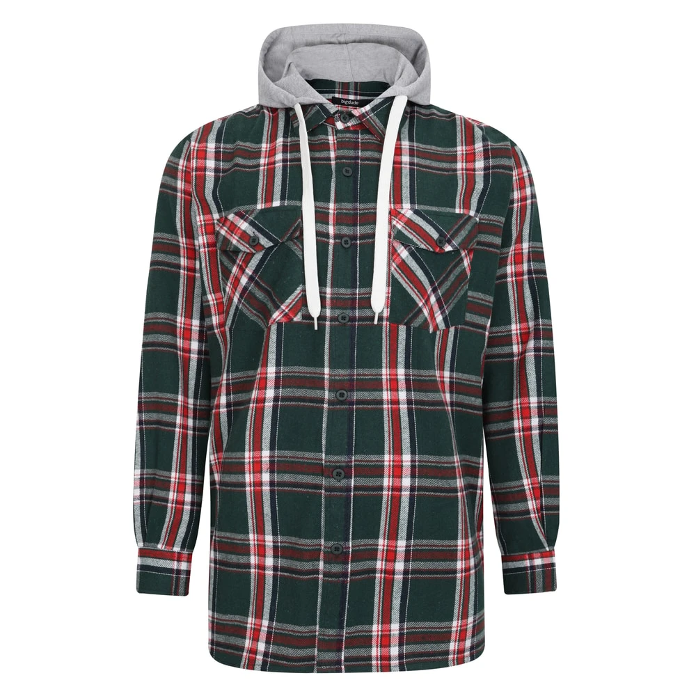Bigdude Hooded Flannel Checked Shirt Green/Red