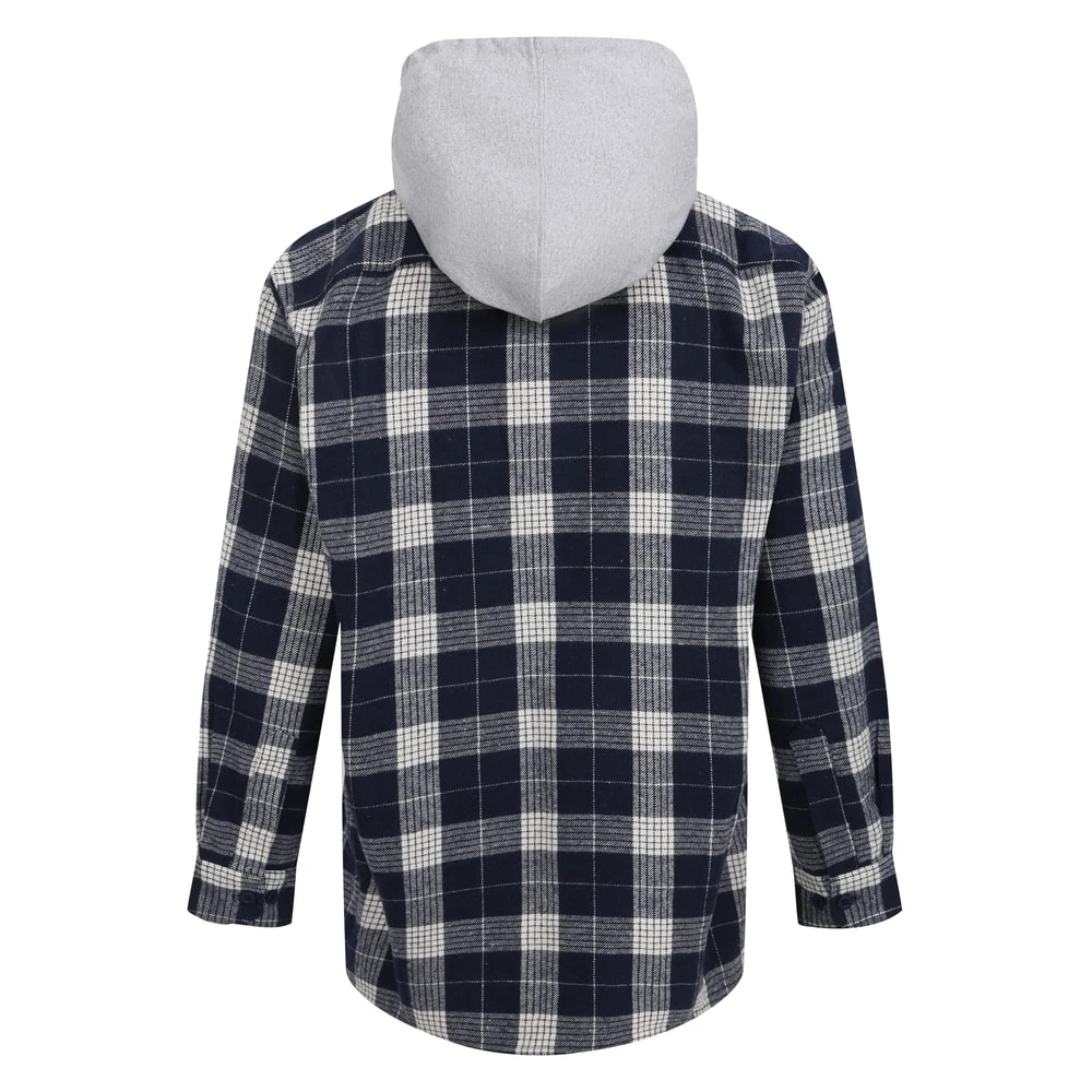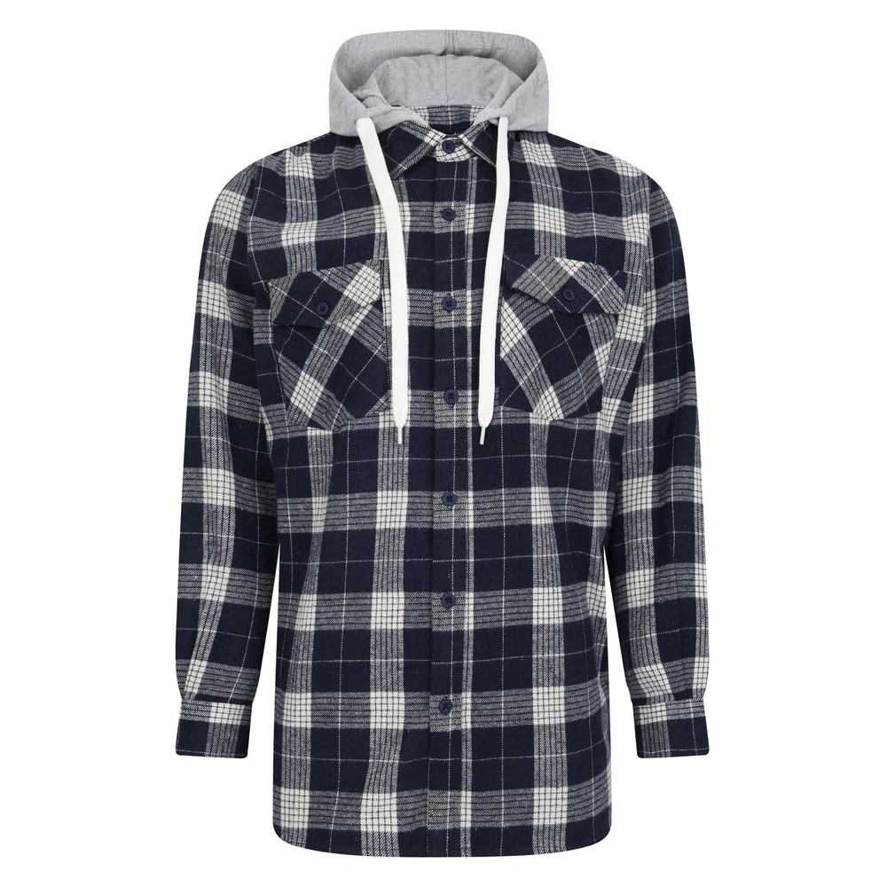 Bigdude Hooded Flannel Checked Shirt Navy/White