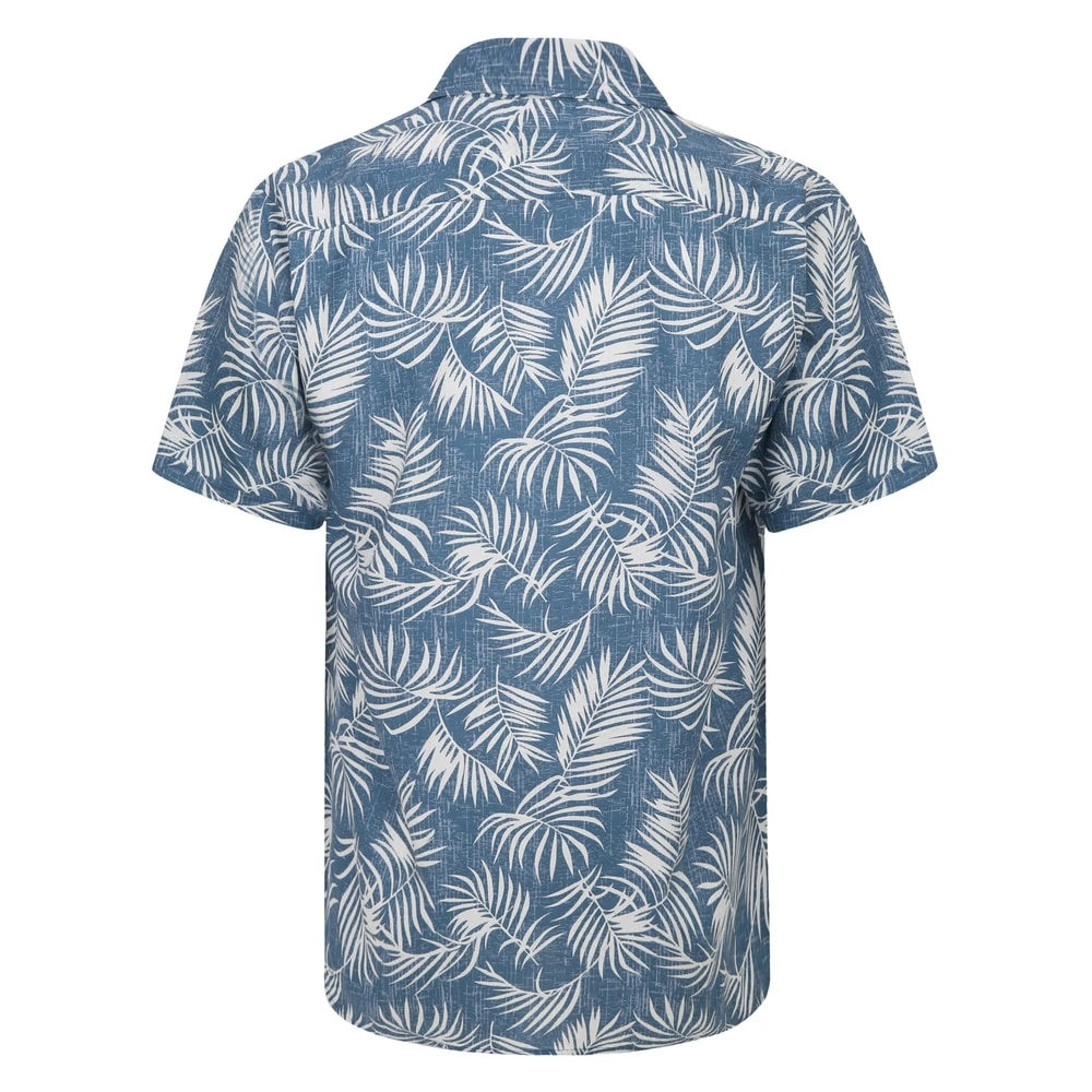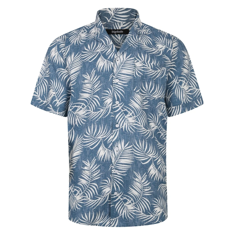Bigdude Leaves Viscose Relaxed Collar Shirt Navy