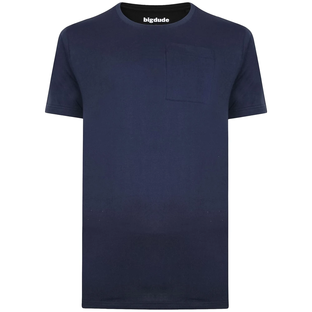 Bigdude Plain Crew Neck T-Shirt With Pocket Navy