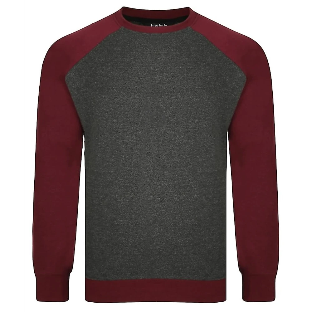 Bigdude Raglan Contrast Crew Neck Sweatshirt Charcoal/Burgundy