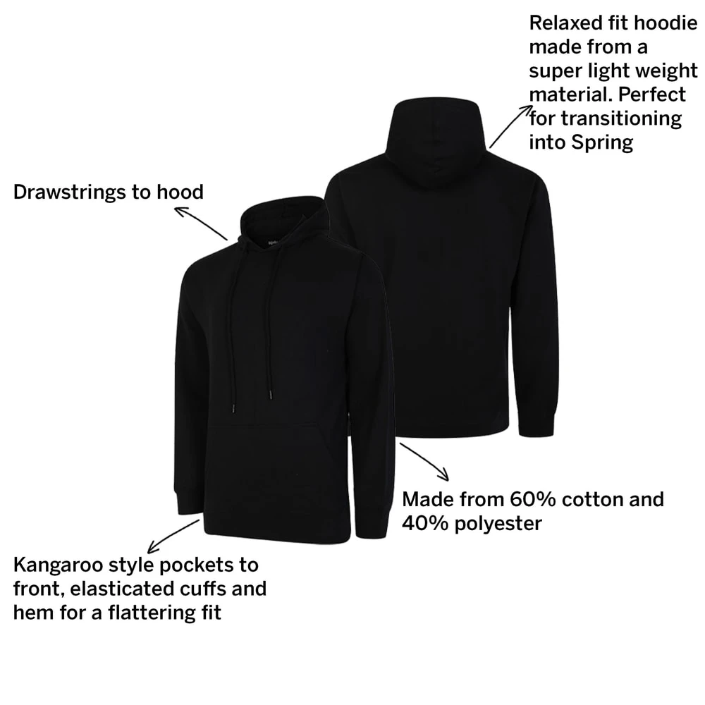 Bigdude Relaxed Fit Lightweight Hoody Black