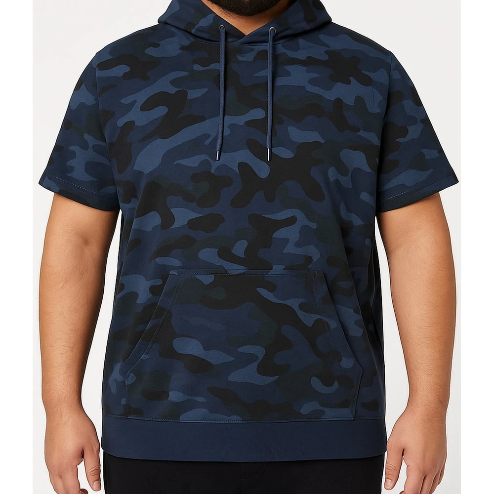 Bigdude Short Sleeve Camo Hoody Navy