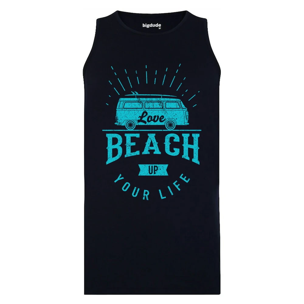Bigdude Small Print Sleeveless T-Shirt Navy